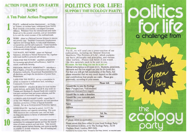Ecology Party 1983 leaflet "Politics for Life"
