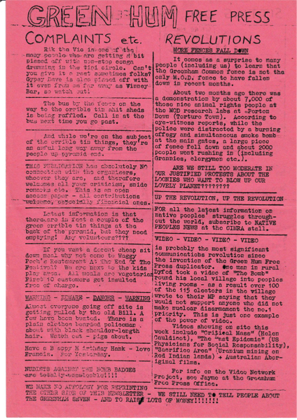 Second edition of Greenham Free Press printed at the 1982 Green Gathering
