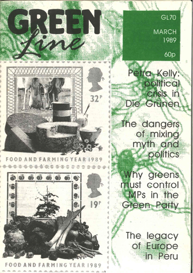 Headlines: Petra Kelly: political crises in Die Grunen, The dangers of mixing myth and politics, Why greens must control MPs in the Green Party, The legacy of Europe in Peru
