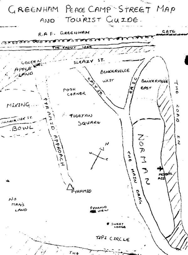 {gallery cols=1 maxcount=1 alignment="before-float" preview_margin="5px 10px 5px 0" rotator_buttons=0 rotator_links=0 filter-include="pv_dt0083*"}phocapreviews/Peace/Greenham{/gallery}In 1982 loose plans were made for a Green Gathering at USAF Greenham Common, the proposed site for nuclear-armed Cruise missiles. It quickly became apparent, however, that there was insufficient time and energy to organise it, as well as the larger green gathering that was planned for Worthy Farm, near Glastonbury. Thus was the idea born for a free ‘bring what you expect to find’ Greenham Festival instead.