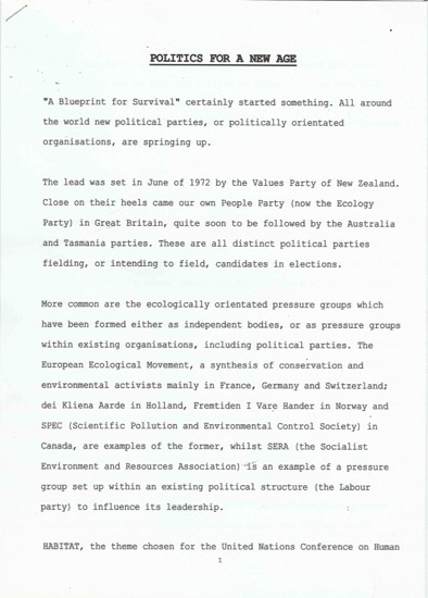 A paper proposing for a New Political Alliance initially targeting the 1979 Euro Elections with a covering letter from Gerard Morgan-Grenville, the founder of CAT in Wales dated 18th July announcing a public meeting in London on 28th July. A future article here will look at the relationship of this initiative to the growing Ecology Party and the non-political Green Alliance which was set up by Morgan-Grenville and Maurice Ash in 1979.