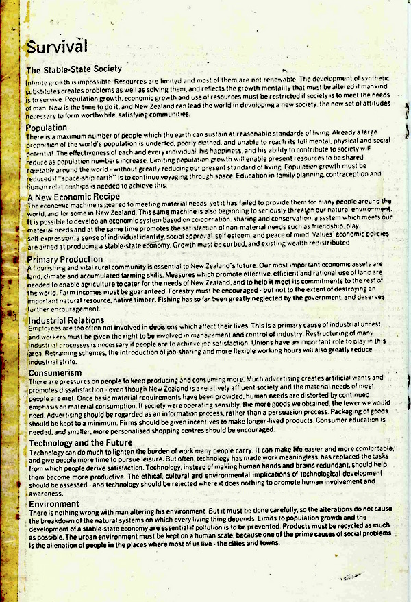 Based on the 1972 Blueprint for New Zealand this was Values Party's shorter 1975 election manifesto