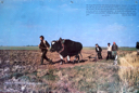 Large poster of ploughing land on Molesworth Airbase with a bull drawn plough
