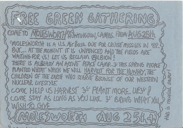 Molesworth related documents including the peace camp, the 1984 Green Gathering, the Rainbow Village