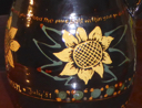 {/simplepopup}Petra Kelly of Die Grünen had been invited to come and speak at the 1981 Ecology Party Summer Gathering. In the event she was unable to attend, but sent two women, one of whom was called Bonnie, from Die Grünen in her place. She also sent a large glazed earthenware jug decorated with sunflower symbols and inscribed with some lyrics.