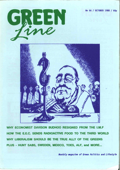 Headlines: Why Economist Davison Budhoo Resigned From The IMF, How The EEC Sends Radioactive Food To The Third World, Why Liberalism Should Be The True Ally Of The Greens, Plus – Hunt Sabs, Sweden, Mexico, TOES, ALF and more…