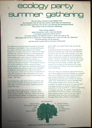 In 1980 it was decided to hold a "Summer Gathering" of the Ecology Party in addition to the conventional round of Conference and business meetings to manage the organisation.