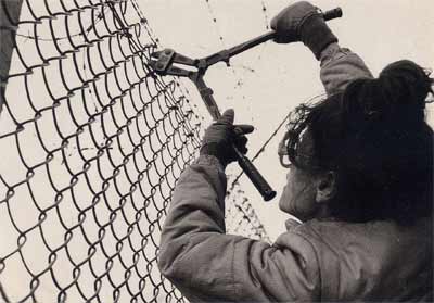 For many years we had debated whether physical damage to property should be seen as 'violent' and whether we, as a nonviolent movement, should eschew such tactics. This action, however, was spontaneous and was undertaken in response to the MOD's eco-vandalism. Whether the action broke a taboo will be debated but from this point on holes in the fence, damage, decoration of the fence and incursions into the base became common features of the campaign.
