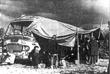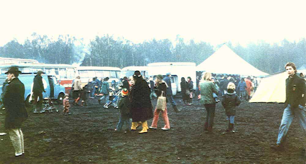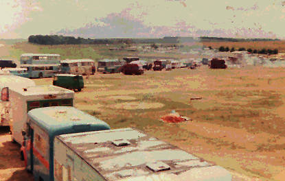Thus it was that a convoy of 130 vehicles, led by Gypsy Dave in his Jaguar, arrived at Greenham on June 30th with about 500 people on board. They took the site and formed the core of the festival that followed.