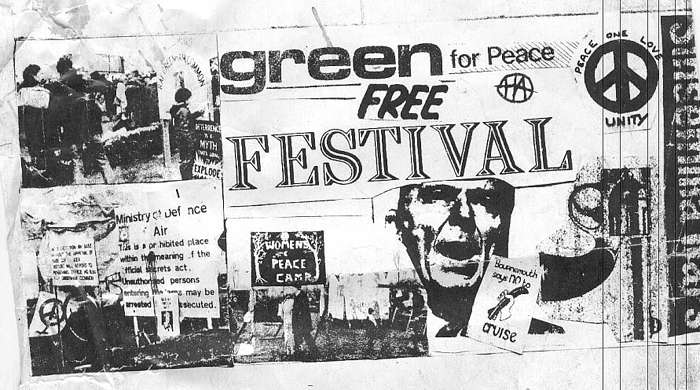 {gallery cols=1 maxcount=1 alignment="before-float" preview_margin="5px 10px 5px 0" rotator_buttons=0 rotator_links=0 filter-include="pv_dt0083*"}phocapreviews/Peace/Greenham{/gallery}In 1982 loose plans were made for a Green Gathering at USAF Greenham Common, the proposed site for nuclear-armed Cruise missiles. It quickly became apparent, however, that there was insufficient time and energy to organise it, as well as the larger green gathering that was planned for Worthy Farm, near Glastonbury. Thus was the idea born for a free ‘bring what you expect to find’ Greenham Festival instead.
