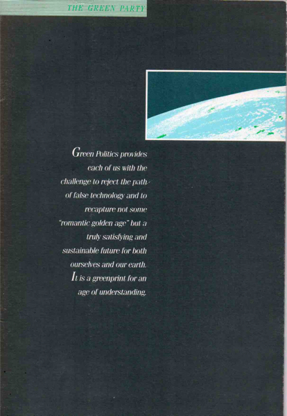 "Green Politics provides each of us with the challenge to reject the path: ' of false technology and to recapture not some 'romantic golden age' but a truly satisfying and sustainable future for both ourselves and our earth. It is a greenprint for an age of understanding."
