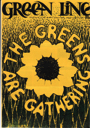 Cover headline: ‘The Greens are Gathering’ graphic around a sunflower.
