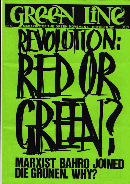 Cover headline: ‘ Revolution: Red or Green? Bahro joins Die Grunen’