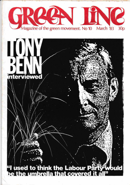 From cover graphic image of Tony Benn captioned "I used to think the Labour Party would be the umbrella that covered it all"
