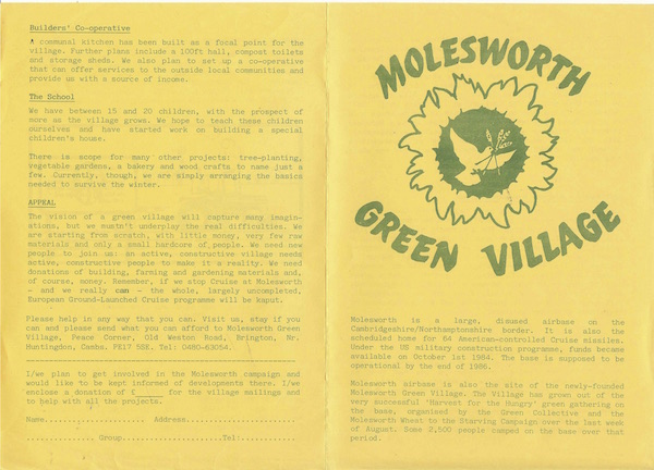 Molesworth related documents including the peace camp, the 1984 Green Gathering, the Rainbow Village