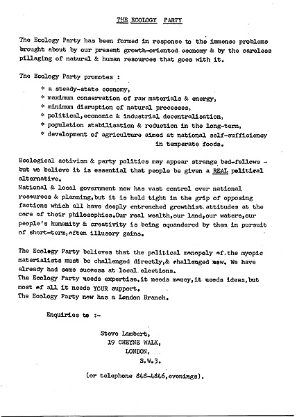 Documents for the London Branch of the Ecology Party. For election leaflets see Ecology Party - Election Leaflets
