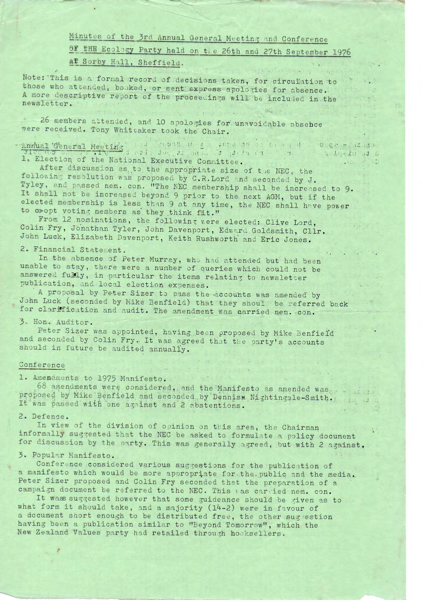 Formal minutes of 1976 conference and AGM