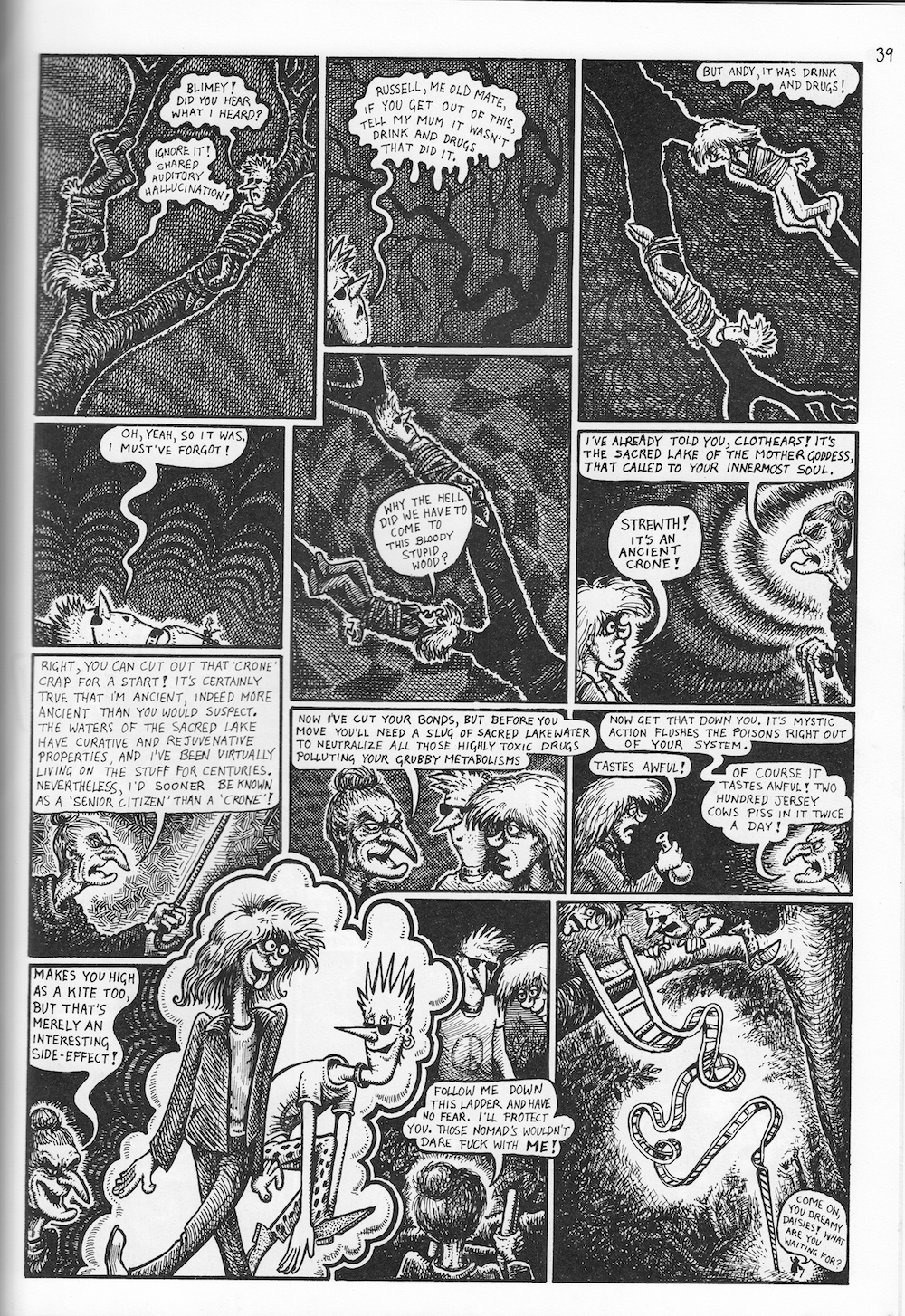 Aided by what might be a real ancient crone or not, Russell and Andy escape the clutches of the New Age Nomads...
